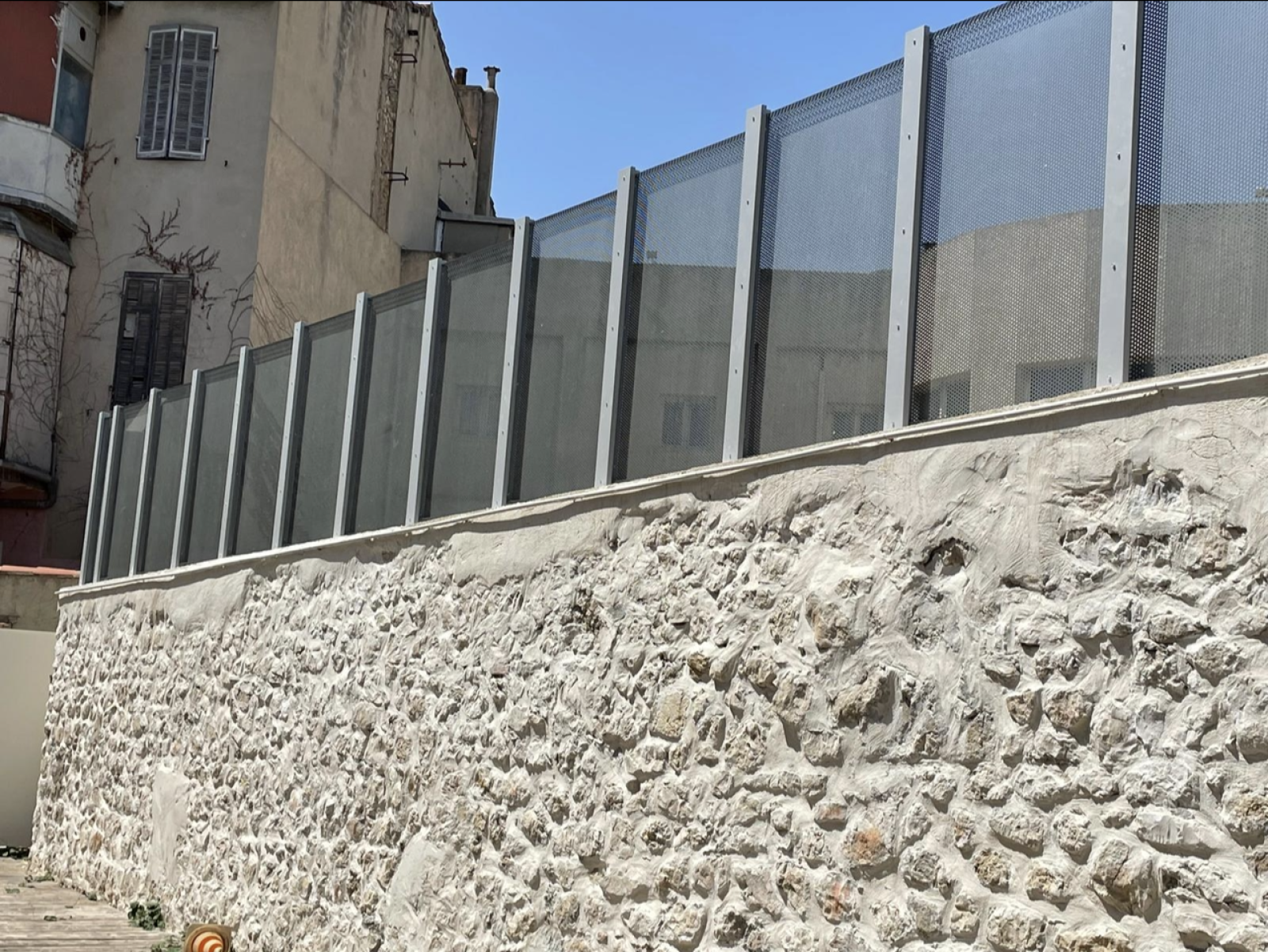 Découvrez la réalisation de Métallerie du Midi : une clôture sur-mesure en tôle perforée, installée pour sécuriser le parking d'une école.
